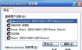 在左侧的对话框中找到featureControl,右键点击并选择“权限”。