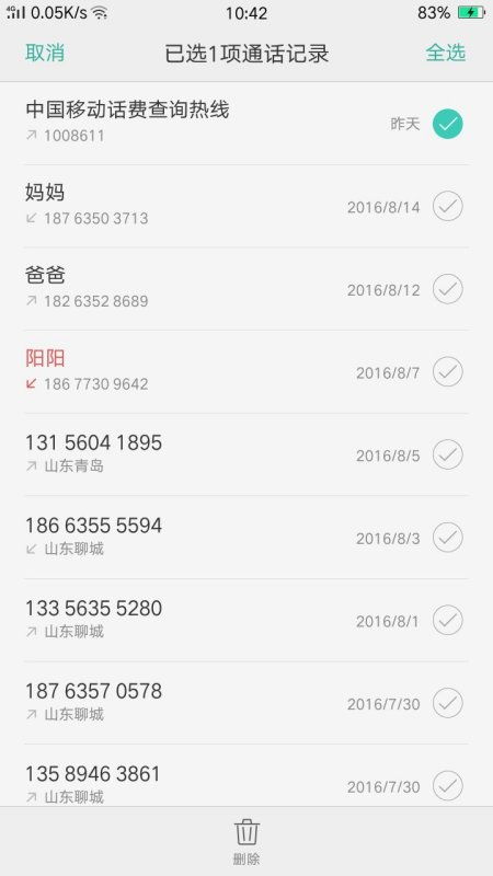 3. 全选删除:如果你想要删除所有记录,可以点击右上角的“全选”按钮。点击“删除”,所有选中的通话记录都会被删除。
